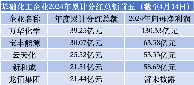 基础化工企业分红情况分化,头部企业慷慨解囊