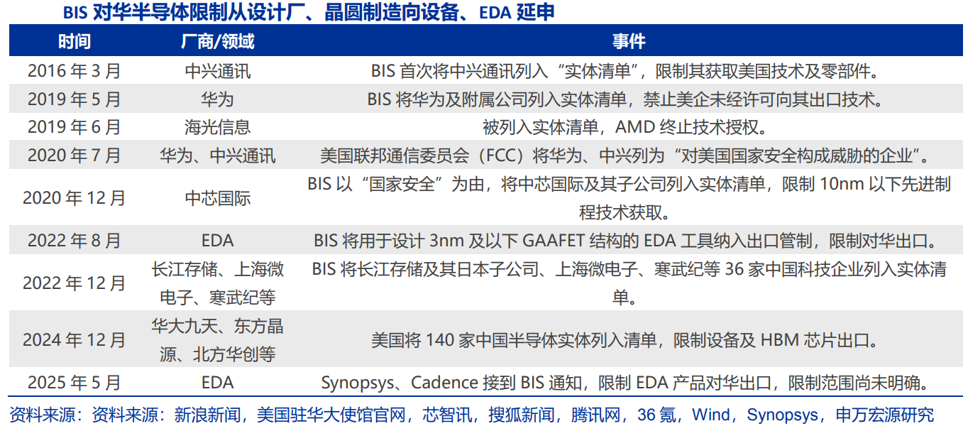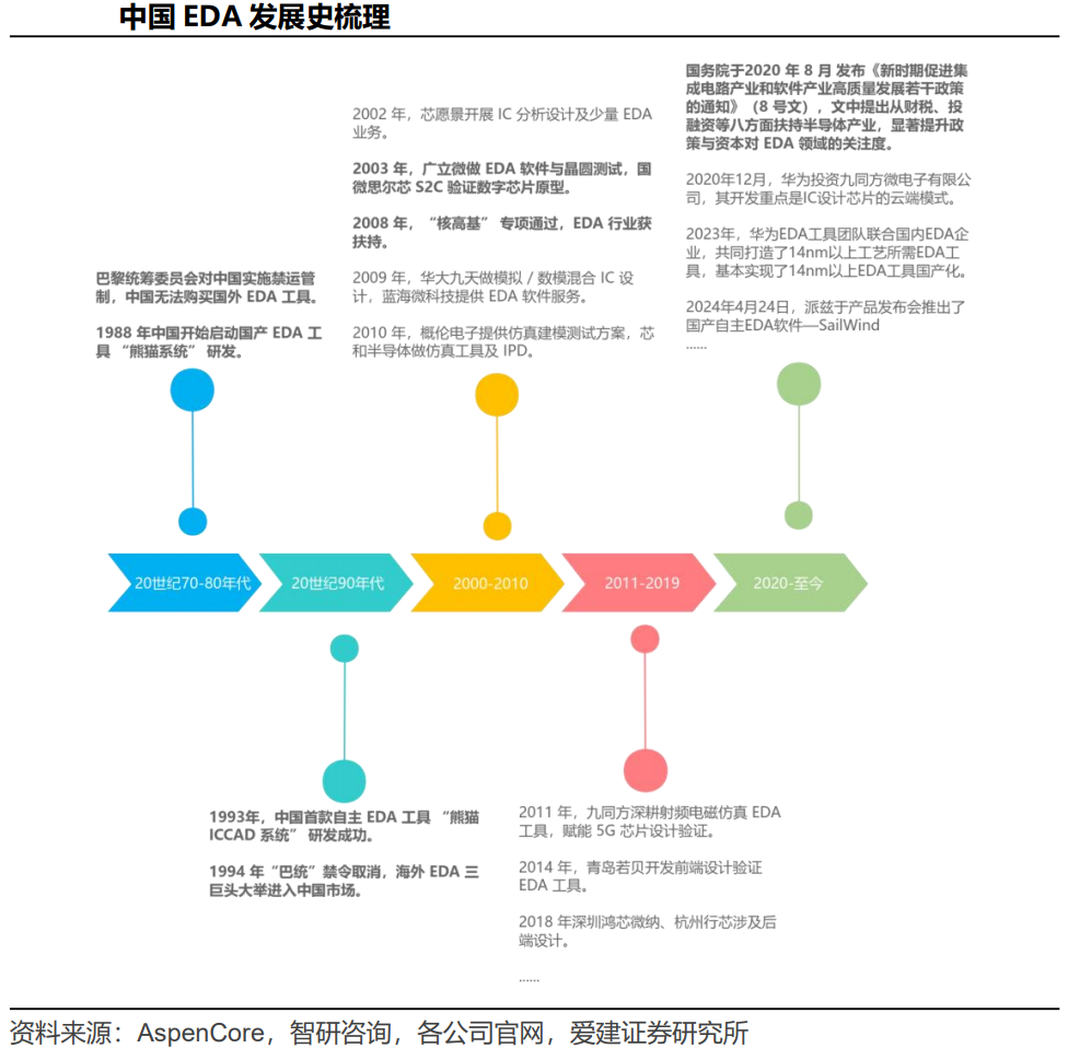 国产替代必要性凸显:2025年5月美国要求三大EDA厂商停止对华服务,消费级芯片厂商(如小米、比亚迪等)成为潜在增量市场,而Synopsys、Cadence在华营收已出现负增长。国内企业通过“自研+并购”双轮驱动,华大九天收购芯和半导体补齐射频工具,概伦电子(688206)并购锐成芯微拓展IP业务,政策层面“核高基”专项、国家大基金二期注资20亿元等持续加码。