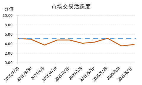 注:0代表“走货很慢”“市场很冷清”,5代表“正常水平”,10代表“走货很快”,“市场很活跃”。