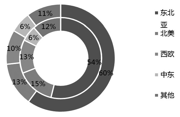 2024年全球纯苯货源流向未变,仅部分区域流通量改变。亚洲对中国、北美套利贸易活跃,东北亚联系全球,北美属净进口地区,东南亚、南亚为净出口地区,中东进出口基本平衡,西欧为净进口地区。
