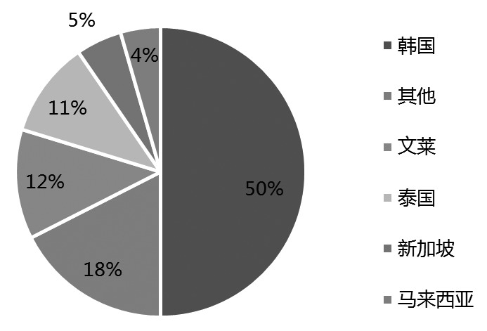 中国纯苯进口高度依赖周边亚洲国家,2024年进口来源国前五为韩国、文莱、泰国、马来西亚和新加坡。进口收货地集中于华东地区,2024年浙江居首,山东次之,上海第三。