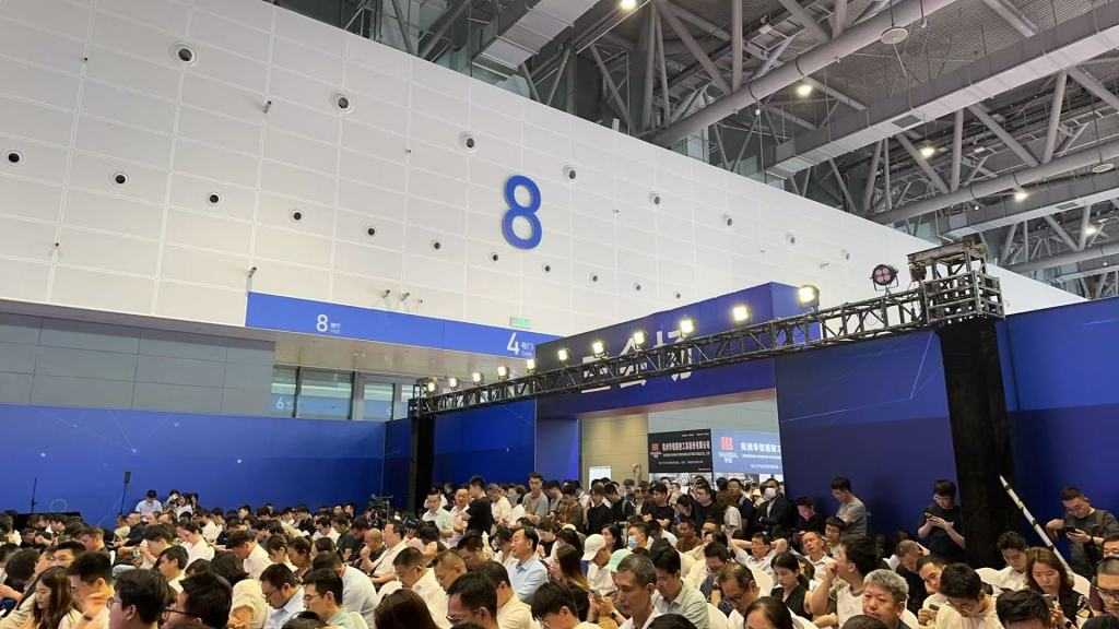 2025杭州人形机器人大会现场,大量观众站在入口处。图澎湃新闻记者贺梨萍