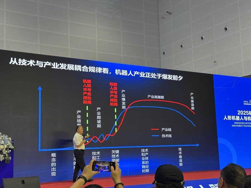 而人形机器人目前处于怎样的发展阶段?朱世强提及,从技术与产业发展耦合规律看,目前技术人产业正处于爆发前夕,“刚刚开始正儿八经地爬坡,进入快速发展的阶段。”而具体细分到人形机器人,朱世强称,其个人的基本判断是,“处于刚刚起步,可能未来还要经过若干次震荡,然后再往上发展的这样一个阶段。”