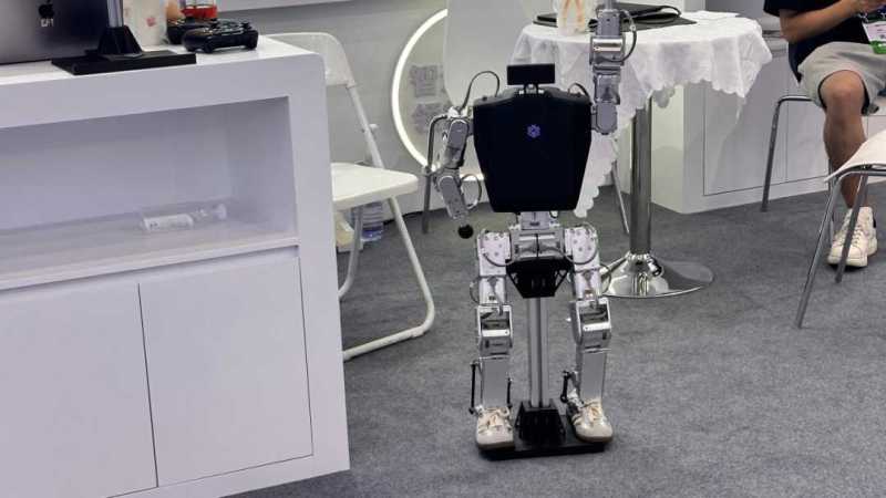 “这是我们第一次参加中博会,希望能够通过这个平台让更多人了解我们的机器人。”广州高擎机电科技有限公司市场经理王皓悦介绍,本次中博会上,他们带来了两款已面世多年并持续迭代更新的人形机器人产品,其中一款刚参加过北京亦庄机器人马拉松,在无人工辅助的情况下持续跑了4个小时,仅中间更换一次电池,且未出现跌倒、发热等情况。