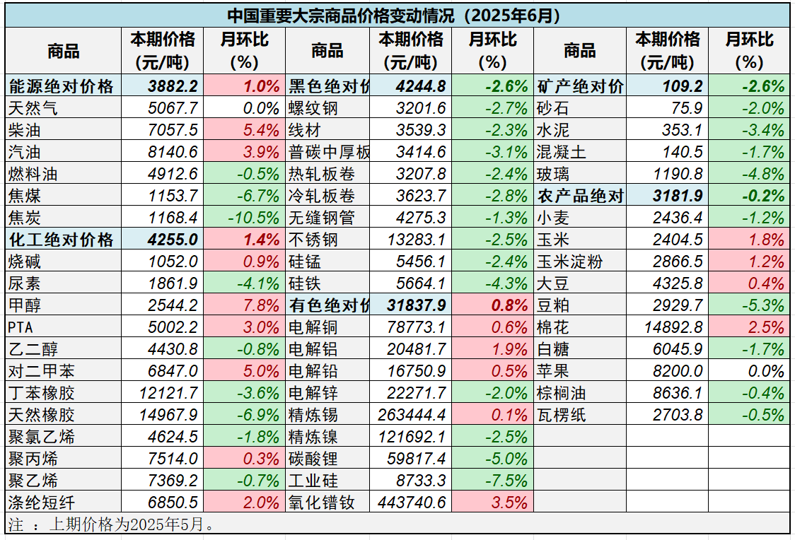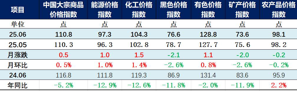2025年6月大宗商品价格指数回升,市场运行平稳.