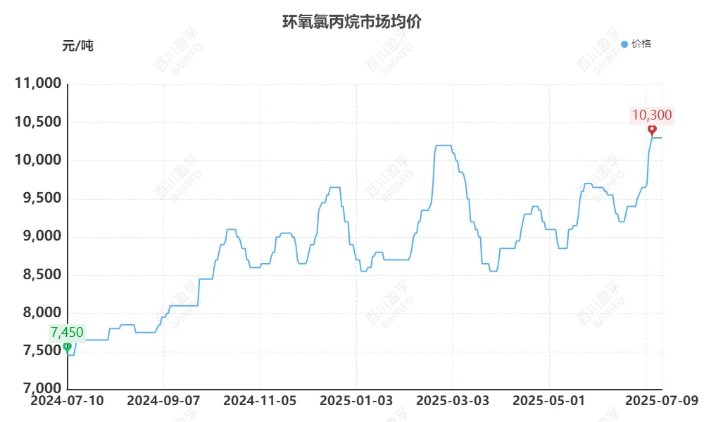 据百川盈孚数据,截至7月9日,国内环氧氯丙烷市场价为1.03万元/吨,较6月中旬每吨上涨约1000元,年初至今涨幅达16%,同比上涨38%。