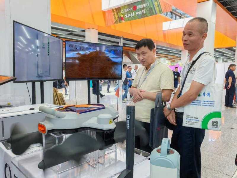 展台前的平仓机器人吸引了不少客商驻足。新华社记者武江民摄