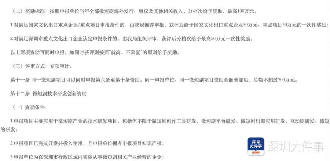 深圳微短剧扶持计划:全链条资助最高达300万元