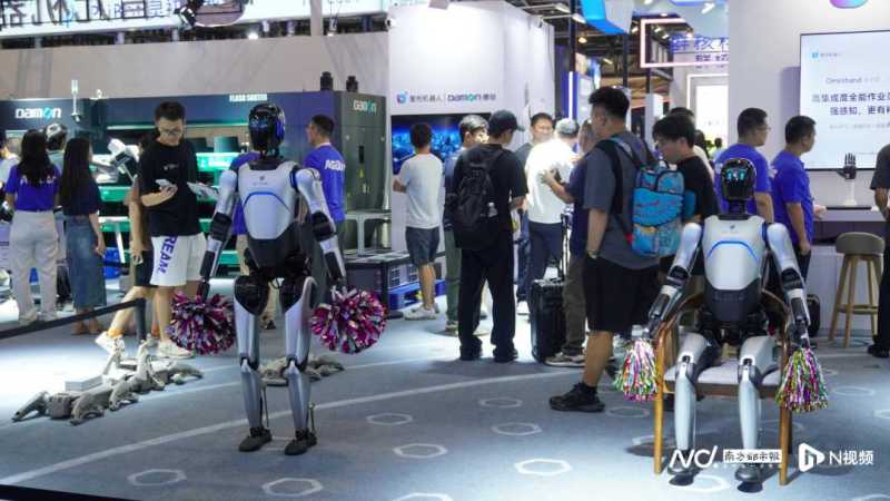 WAIC2025现场,智元的双足人形机器人远征A2在表演。图:杨柳