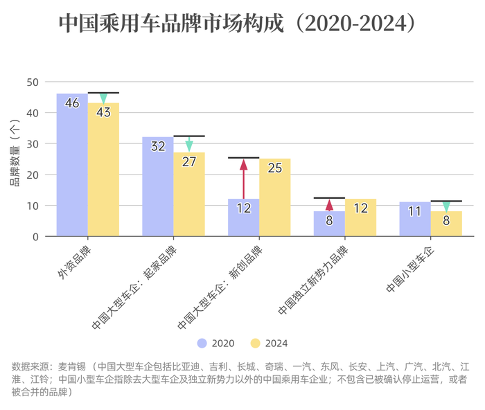 麦肯锡认为2019年中国车市资格赛就已结束,淘汰赛开启。数据显示,中国市场年销量在60万辆以上的品牌从2020年的11个增至2024年的13个。