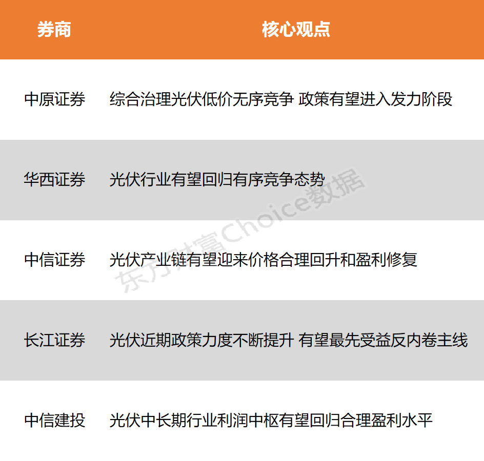 工信部办公厅印发《2025年度多晶硅行业专项节能监察任务清单的通知》,通知指出,在工业节能监察过程中,要贯彻落实《国务院办公厅关于严格规范涉企行政检查的意见》,进一步规范工业节能监察程序措施,切实减轻企业负担。中原证券表示,综合治理光伏行业低价无序竞争,光伏政策有望进入发力阶段;华西证券指出,光伏行业在价格法修正草案治理“内卷式”竞争及上游产能整合预期下,有望回归有序竞争态势;中信证券认为,光伏产业链有望迎来价格合理回升和盈利修复,基本面有望得以夯实和改善。