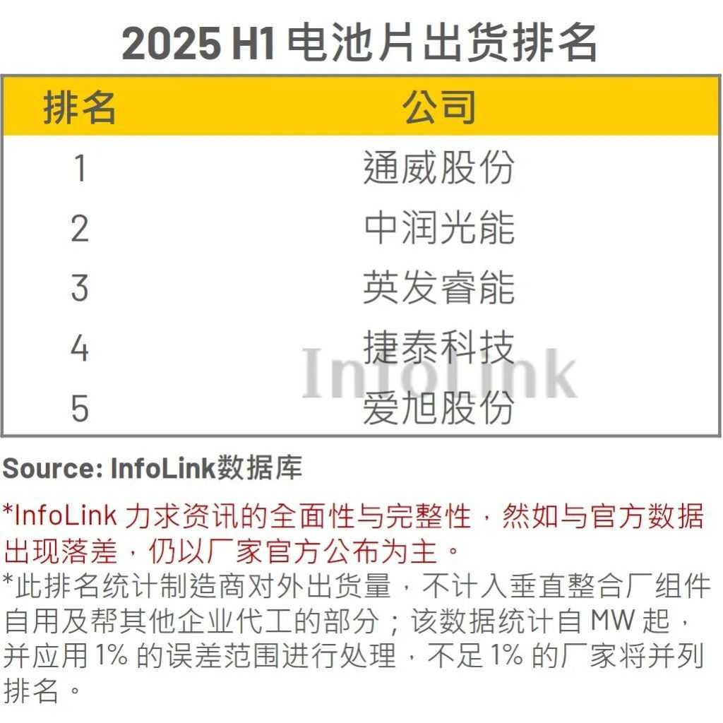 老牌电池企业中润光能守住了第二名的位置。InfoLink称,中润的国内生产基地仍持续出货PERC电池片,此外老挝基地作为全球贸易环境大幅变化前的最佳输美路径之一,亦带来可观出货量。