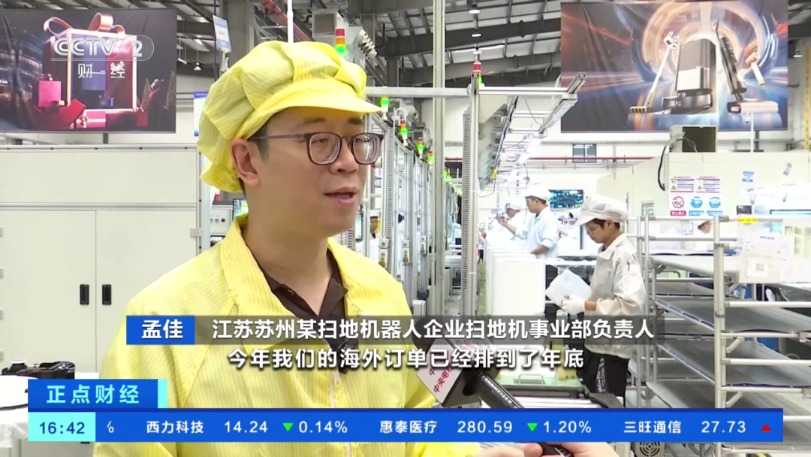 江苏苏州某扫地机器人企业扫地机事业部负责人孟佳: 今年我们的海外订单已经排到了年底。欧洲是我们(出口)占比比较大的市场,实现了百分百以上的增长。今年我们引入了非常多的智能制造设备。之前平均生产周期大概在40天,今年我们提升到30天,扫地机器人海外订单火爆。