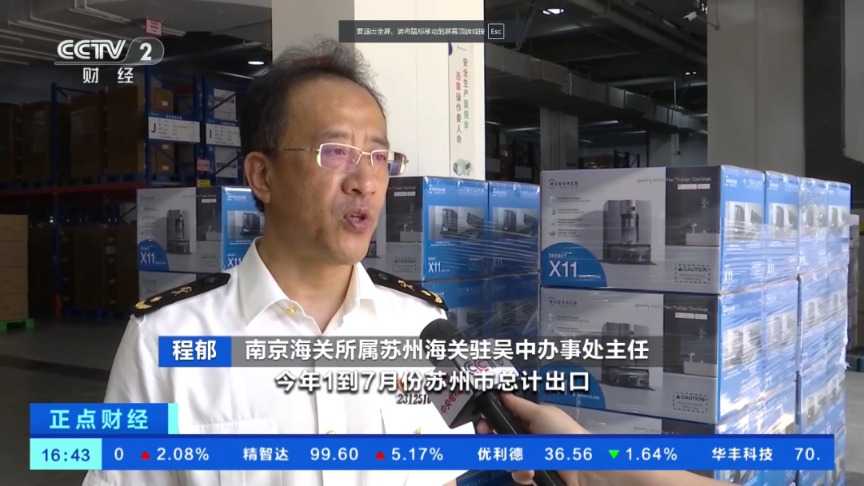 南京海关所属苏州海关驻吴中办事处主任程郁:今年1到7月份苏州市总计出口,包括扫地机器人在内的家电产品5588万台,同比增长4.2%,扫地机器人出口数据亮眼。