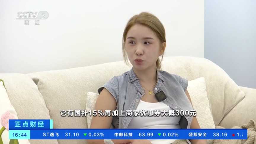 消费者赵静宇:我看中了一台扫地机器人,在直播间看它的价格是4399元。它有国补15%再加上商家优惠券大概300元,这样补下来应该是3150元左右,比原价优惠了1200多元,国补政策助力消费。