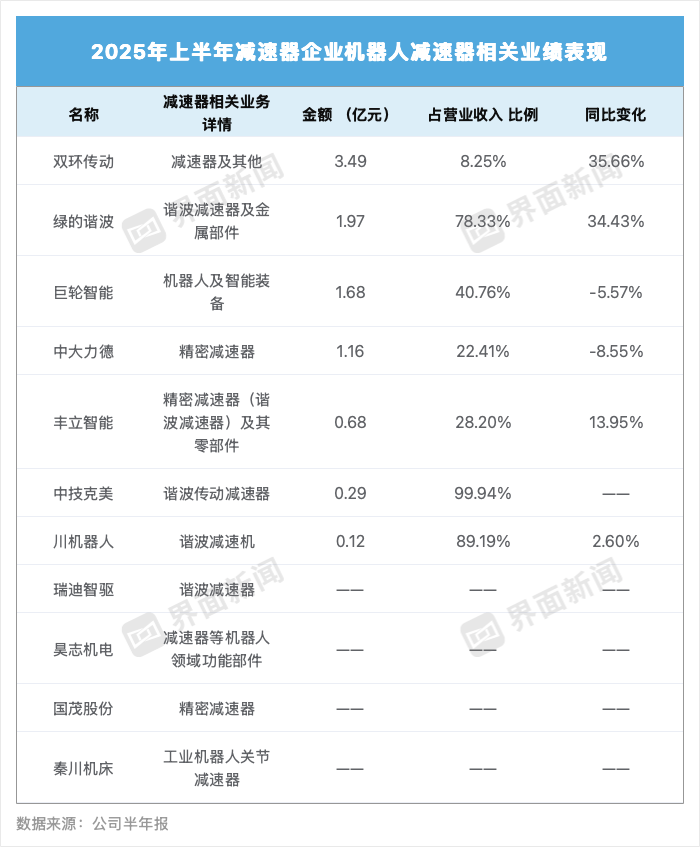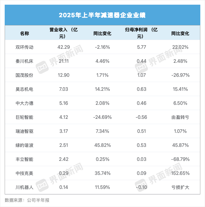 2025减速器上市公司中期业绩:工业机器人助力,整体向好