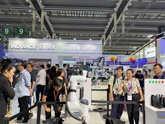 汇川技术展台前有不少观众在了解展品的详细介绍