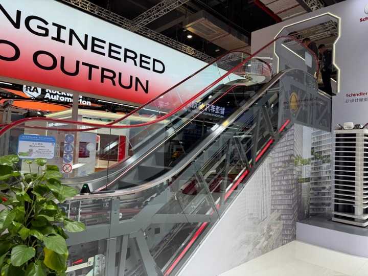 再走几步,迅达电梯现场展示了一台自动扶梯——这是迅达电梯今年重点推出的“存量电梯焕新”解决方案。迅达电梯还将展示机器人电梯安装系统,在全自动安装、强化安全、提升质量与效率等方面具有优势。该技术已在上海徐家汇中心和广州国际文化中心落地,为高层建筑的电梯安装提供了解决方案。同时,迅达电梯还展示了智慧维保系统,将通过物联网技术,实现电梯运行数据的实时监控与分析,能精准预测潜在故障并提前进行维护,最大限度减少停机时间,体现了电梯行业向智能化、数字化方向转型的显著特征。