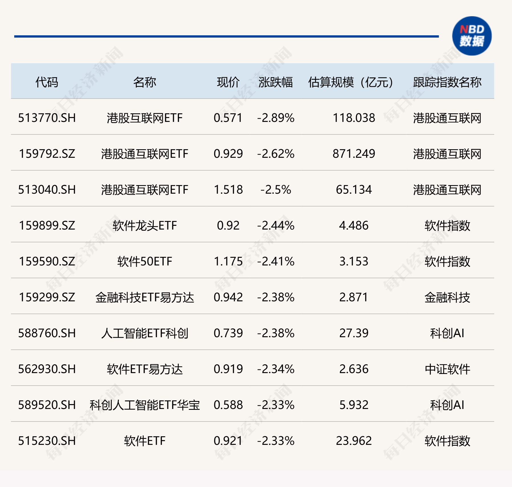 (原标题:ETF今日收评 | 化工相关ETF涨超3%,港股互联网相关ETF跌超2%)