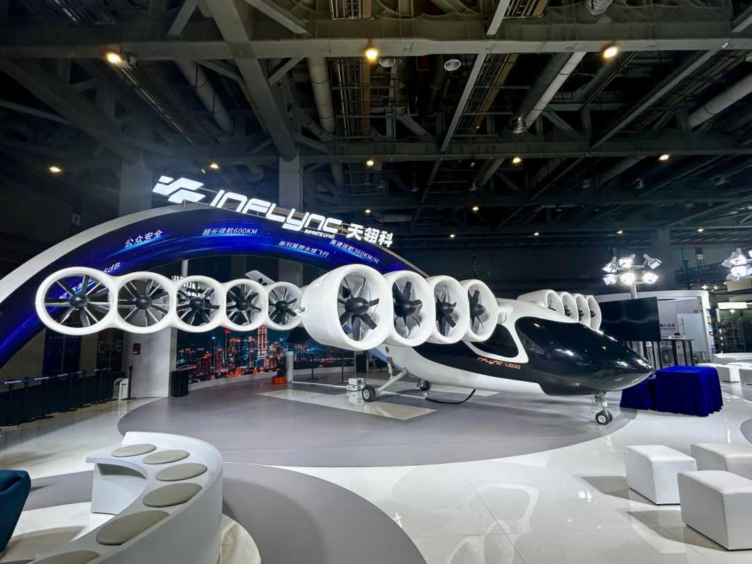 在进博会的汽车及智慧出行展区里,多家低空经济代表企业带来了eVTOL(电动垂直起降航空器),这是一种可以像直升机一样垂直起降、电力驱动的空中交通工具。第一次参加进博会的天翎科,展示了一架造型吸睛的eVTOL。‘这款机型采用混动增程全倾转涵道翼构型设计,最大航程达600公里,最高巡航速度360公里/小时,兼具高性能、高安全与低噪声,可承载1名驾驶员与5名乘客。’天翎科现场工作人员介绍,10月已下线全尺寸真机,计划年内完成首飞。除了这架真机,天翎科还在进博会上发布了未来计划推出的产品类型,包括商务型、8座型以及医疗型、货运型等,可实现多场景多用途应用。