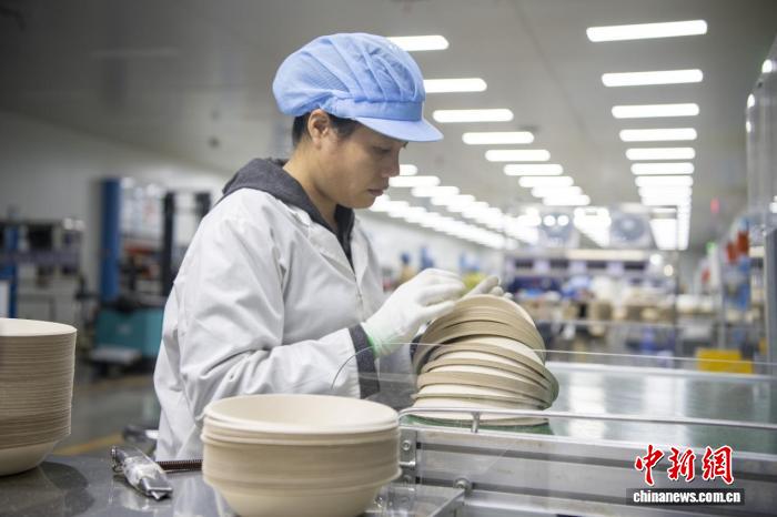 图为广西绿联生物科技有限公司的工人在生产环保餐具。林馨摄