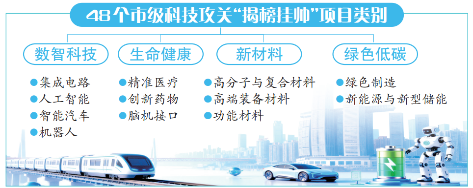 重庆发布48个市级科技攻关“揭榜挂帅”项目,涉及多个重点产业领域,发榜金额超3亿元,旨在推动产业升级与科技创新,提升重庆竞争力。