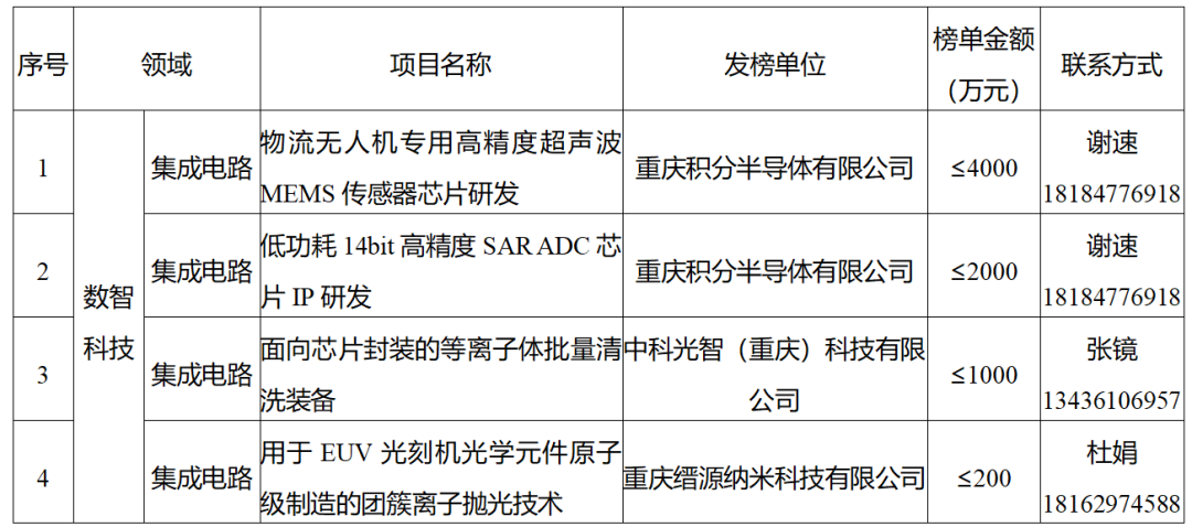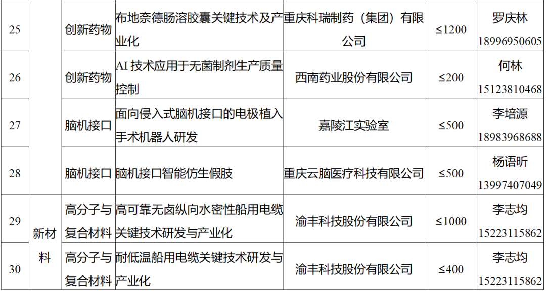 “重庆发布”微信公众号11月18日消息,日前,重庆市经济信息委与市科技局联合公布48个市级科技攻关“揭榜挂帅”项目,这些项目聚焦科技创新,重点围绕重庆市“33618”现代制造业集群体系建设和“416”科技创新布局展开,涉及4个类别、12个重点产业领域,旨在推动产业升级。累计发榜金额将超3亿元,其中,经费在500万元以上的重大项目有26个,500万元以下的重点项目有22个。这批“揭榜挂帅”项目来自数智科技、生命健康、新材料和绿色低碳四个类别,每个项目本身都涉及相应的新兴产业领域,为重庆的经济发展注入新动力。