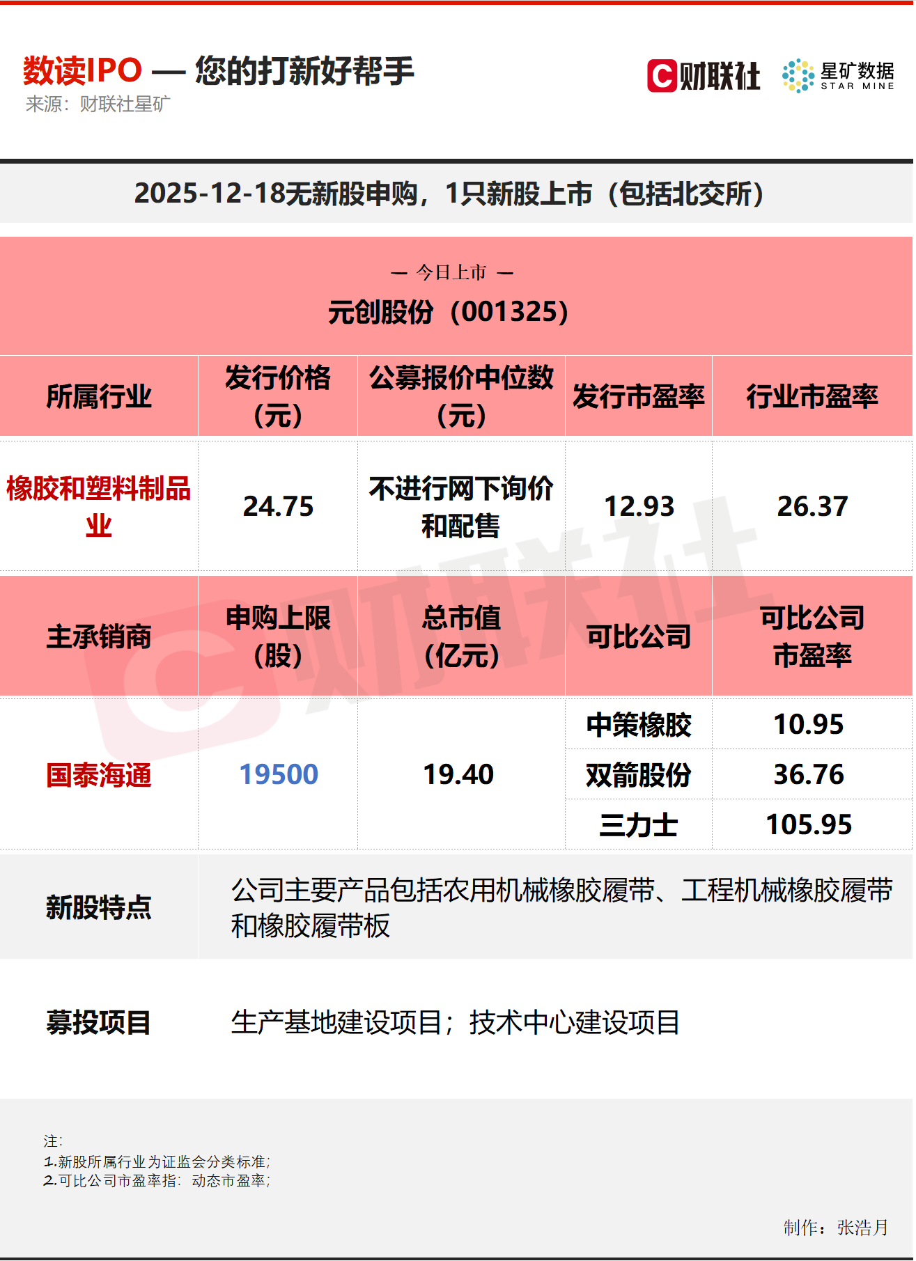 财联社12月18日讯,今日无新股申购;有1只新股上市,为深交所的元创股份。