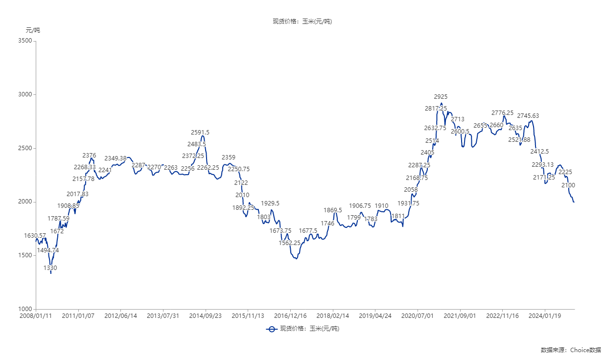 2024年国内粮食丰产,但玉米价格持续走低,导致种植户亏损。市场供需承压,进口冲击和替代品竞争是主要原因。然而,进口政策收紧和下游需求逐渐好转,或有望推动玉米价格迎来转机。