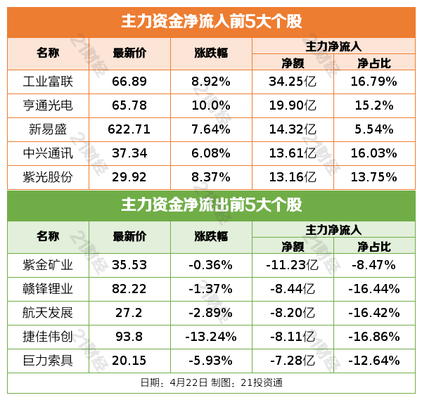 4月22日,市场低开高走,沪指重返4100点,创业板指、深成指均涨超1%。创业板综指创历史新高,突破2015年6月3日的高点。截至收盘,沪指涨0.52%,深成指涨1.3%,创业板指涨1.73%。沪深两市成交额2.56万亿,较上一个交