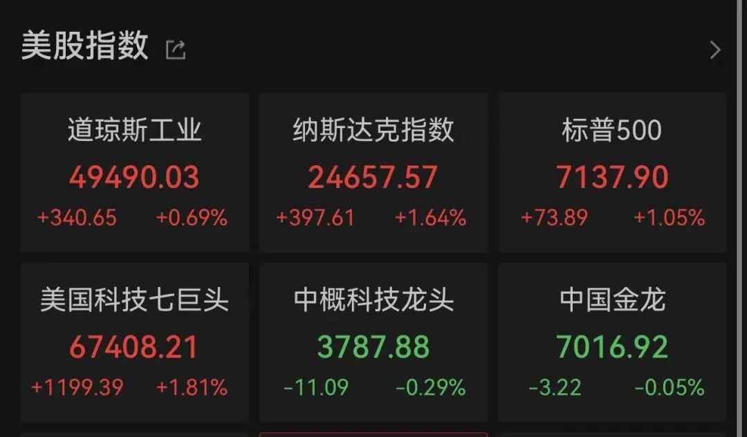 美股方面,当地时间4月22日,美股三大股指全线收涨。截至收盘,道指涨0.69%报49490.03点,标普500指数涨1.05%报7137.9点,纳指涨1.64%报24657.57点。其中标普500、纳指创收盘新高。