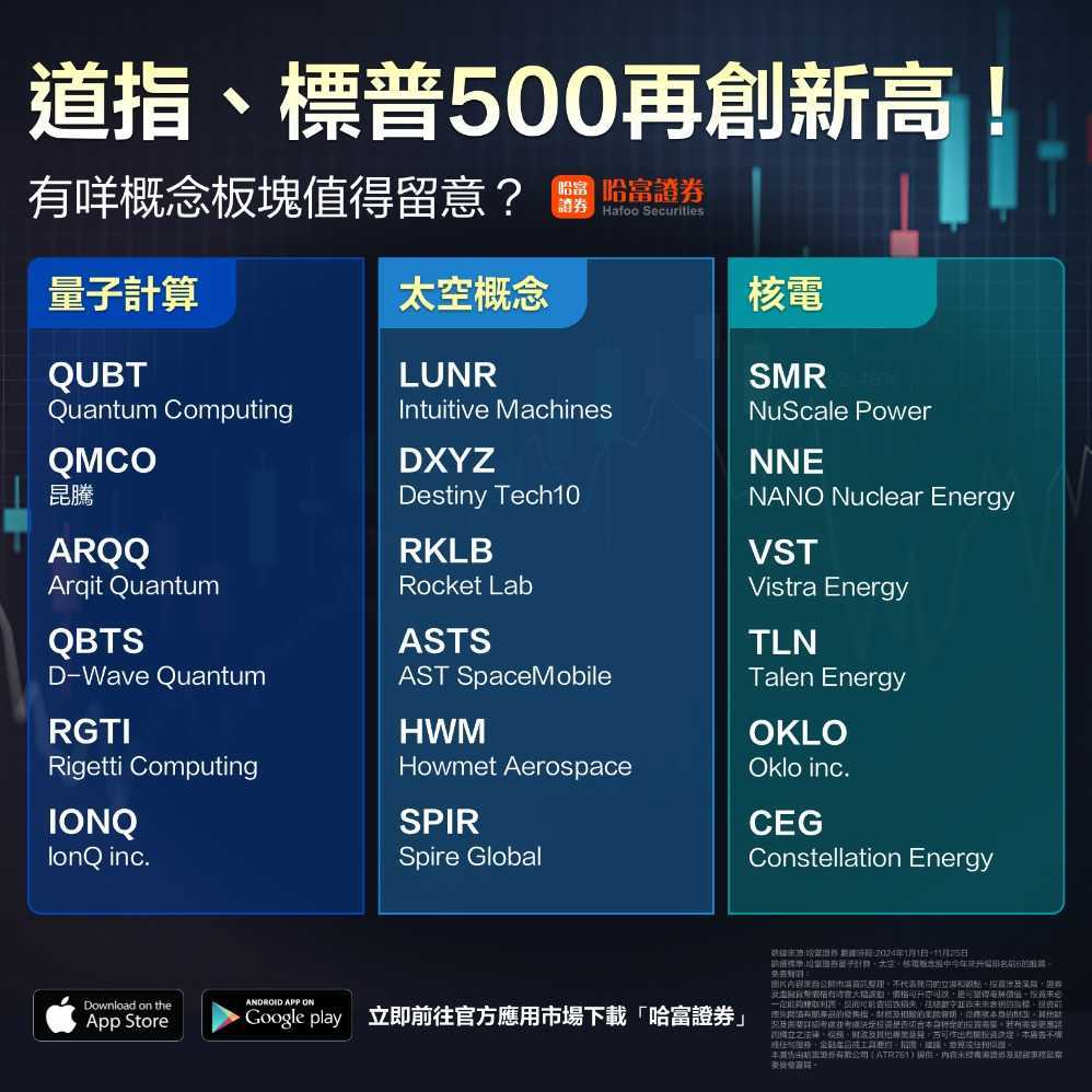 观察近期美股市场动态,三大前沿科技领域——量子计算、太空卫星及核电概念股,表现尤为抢眼,成为引领市场上涨的主力军。