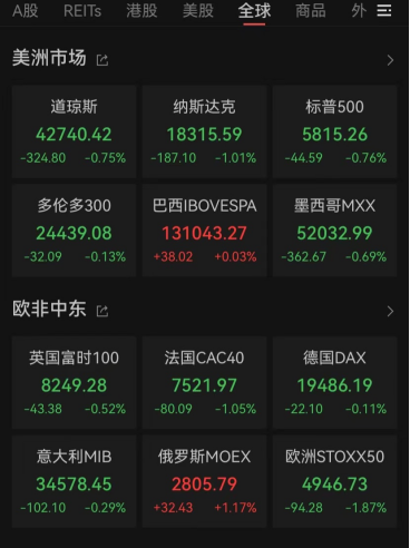 与此同时,欧洲三大股指也全线下跌。具体来看,德国DAX指数、法国CAC40指数和英国富时100指数分别下跌0.11%、1.05%和0.52%。