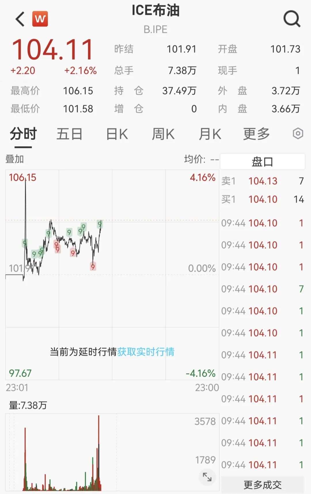 当地时间4月22日,美国总统特朗普在接受采访时表示,何时结束同伊朗冲突目前"没有时间表"。消息一出,油价应声狂飙,NYMEX WTI原油价格一度大涨4.58%。布伦特原油突破100美元/桶,一度上探106.15美元/桶;截至记者发稿,报104.11美元/桶。