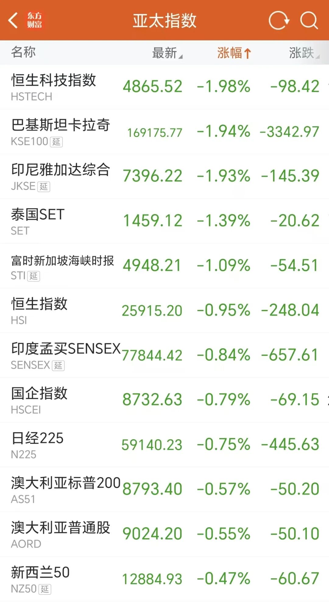 亚洲主要股市多数下跌,日经225指数盘中触及历史新高后一路下行,收跌0.75%。恒生指数、澳大利亚标普200、新西兰50等指数收盘均下跌。