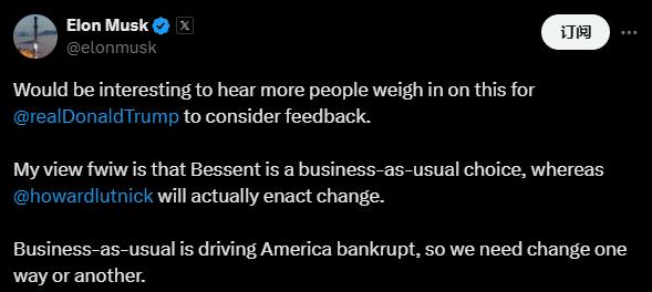 然而,并非所有人都对贝森特的提名持乐观态度。特朗普的“大红人”埃隆·马斯克在社交媒体上表示,贝森特是一个“循规蹈矩”的选择,而美国现在需要的是改变。尽管如此,一些特朗普的批评者也对贝森特给予了高度评价。