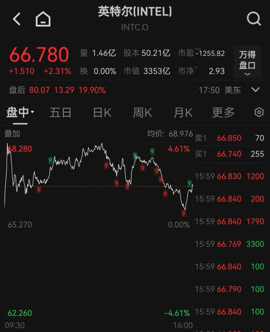英特尔盘后股价创新高