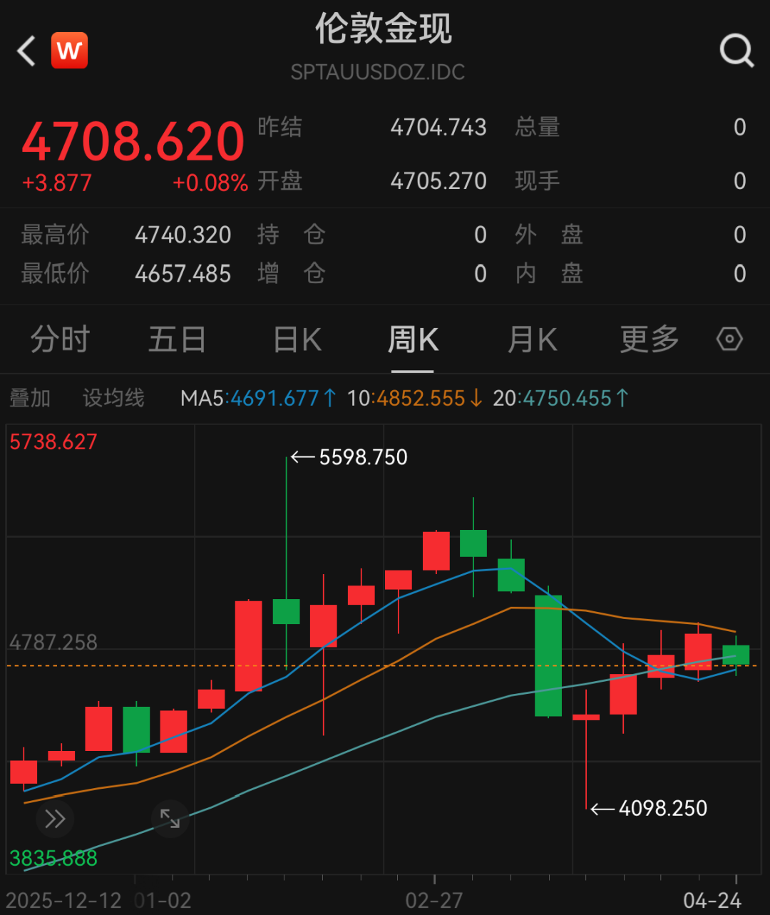 黄金价格方面,近期震荡下跌,COMEX黄金最新收报4725.4美元/盎司,伦敦金报4708.62美元/盎司,周跌幅分别为3.16%、2.66%,双双结束了四周连涨行情。