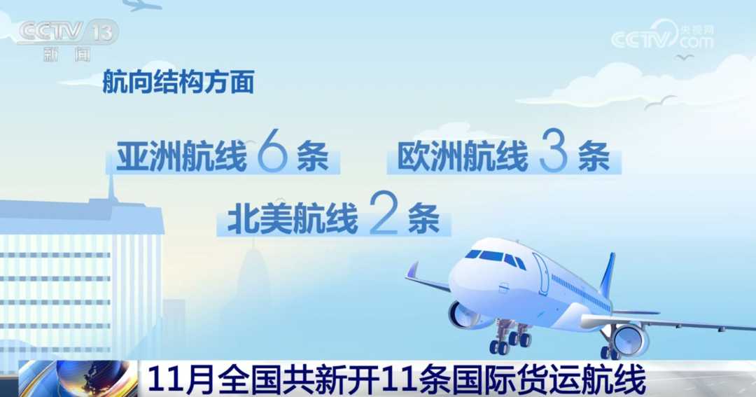 央视网消息:记者于12月1日从中国物流与采购联合会航空物流分会获悉,我国国际航空货运航线在11月份继续迎来拓展新篇章,当月共新增11条国际货运航线,展现了我国航空物流业的强劲发展势头。