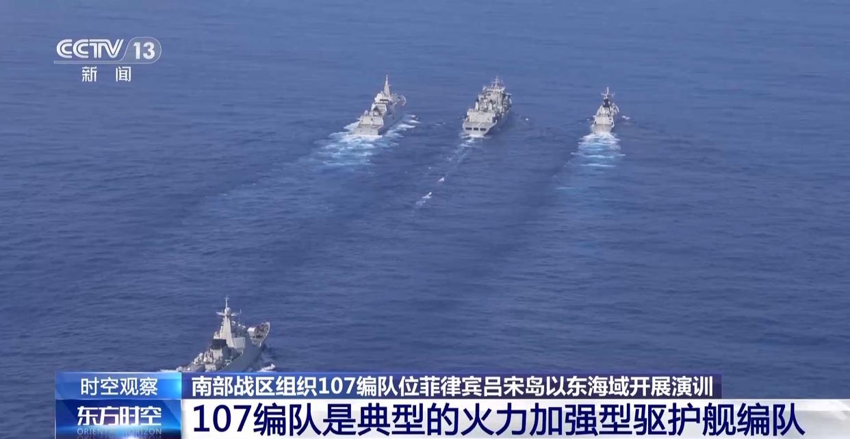 南部战区24日发布:近期,中国人民解放军南部战区组织107编队位菲律宾吕宋岛以东海域开展演训活动,重点进行实弹射击、海空协同、快速机动、航行补给等演练,检验一体化联合作战能力。这是针对当前地区局势采取的必要行动,符合相关国际法和国际实践。战区部队将根据安全形势需要,常态组织有关军事行动,维护国家主权安全和地区和平稳定。
