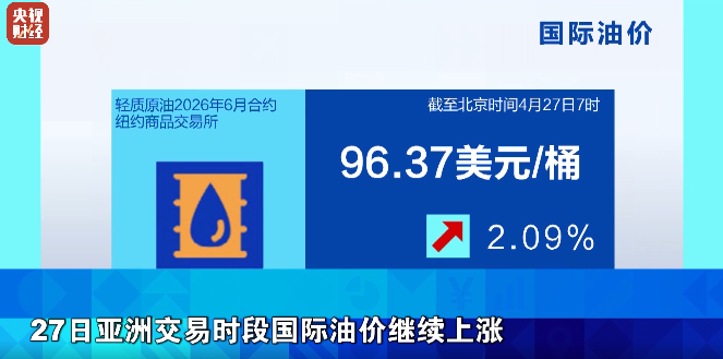 在刚刚过去的周末,由于美国总统特朗普取消美方代表前往巴基斯坦与伊朗谈判的行程、美伊谈判陷入停滞,加剧了全球能源市场的波动,27日亚洲交易时段,国际油价继续保持涨势,纽约油价和布伦特油价的涨幅一度都超过2%。