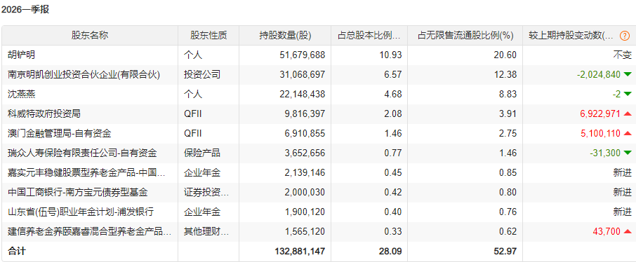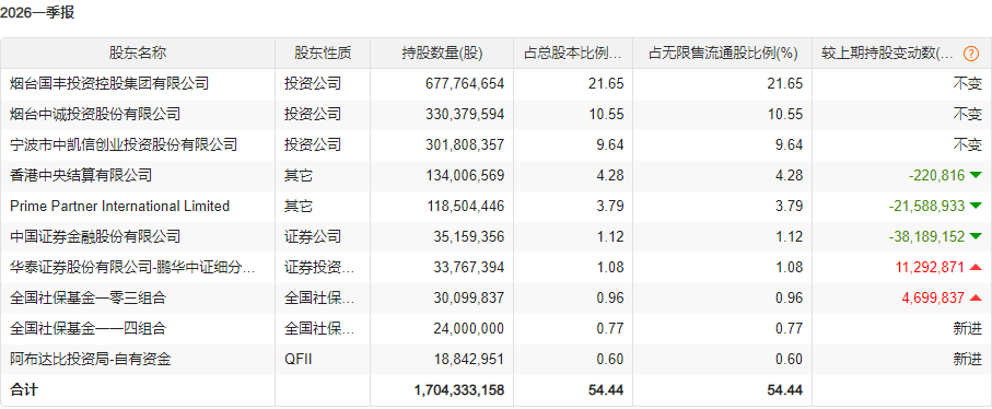截至一季度末,阿布达比投资局新进成为万华化学前十大流通股股东,持股数量为1884.3万股。