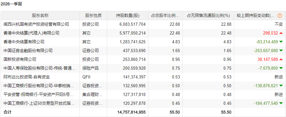 具体来看,截至一季度末,阿布达比投资局新进成为紫金矿业前十大流通股股东,持股数量为1.41亿股。最新发布的一季报显示,公司一季度实现营业收入984.98亿元,同比增长24.79%;实现归母净利润200.79亿元,同比增长97.50%。