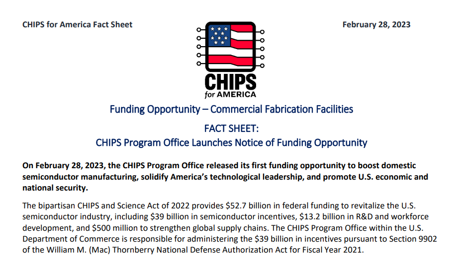当地时间周二一早,美国商务部在官网发布了一系列文件,预示着总额高达500亿美元的芯片产业补贴申请流程即将拉开帷幕。