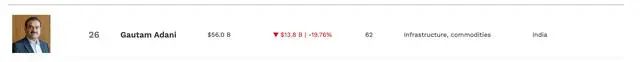 ▲阿达尼现在以560亿美元的净资产排名全球富豪榜第26位