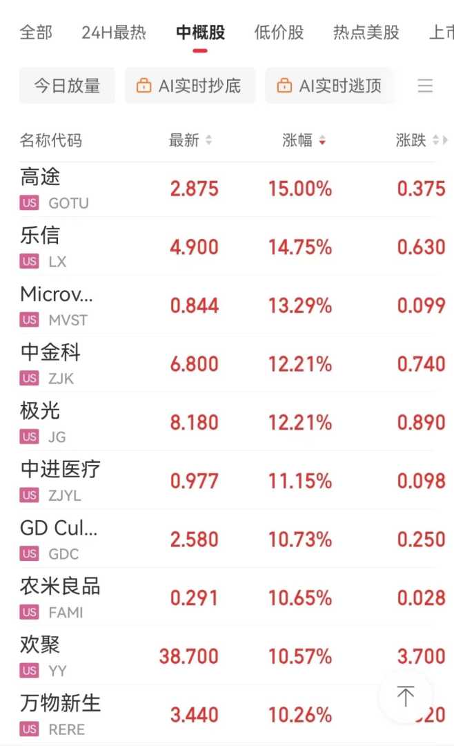 具体来看,金山云大涨超12%,领跑中概股市场;爱奇艺、高途等个股紧随其后,涨幅均超过9%;理想汽车、有道等科技股也表现不俗,涨幅超过6%。此外,京东、哔哩哔哩、小鹏汽车等知名企业也均有不俗表现。