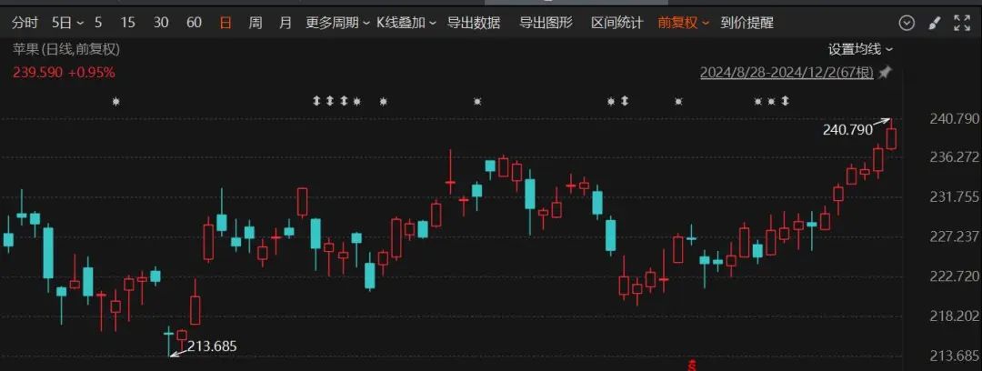 回顾前一交易日,12月2日,美股市场呈现分化格局。道琼斯工业平均指数微跌0.29%,而纳斯达克综合指数与标普500指数则分别上涨0.97%与0.24%,其中纳斯达克与标普500指数再度刷新历史新高。科技股方面,芯片板块表现尤为亮眼,台积电股价飙升逾5%,Arm Holdings涨幅也超过4%。苹果公司的股价同样创造了历史新高,收盘上涨0.95%,市值超过3.62万亿美元,再次成为全球市值最高的公司。
