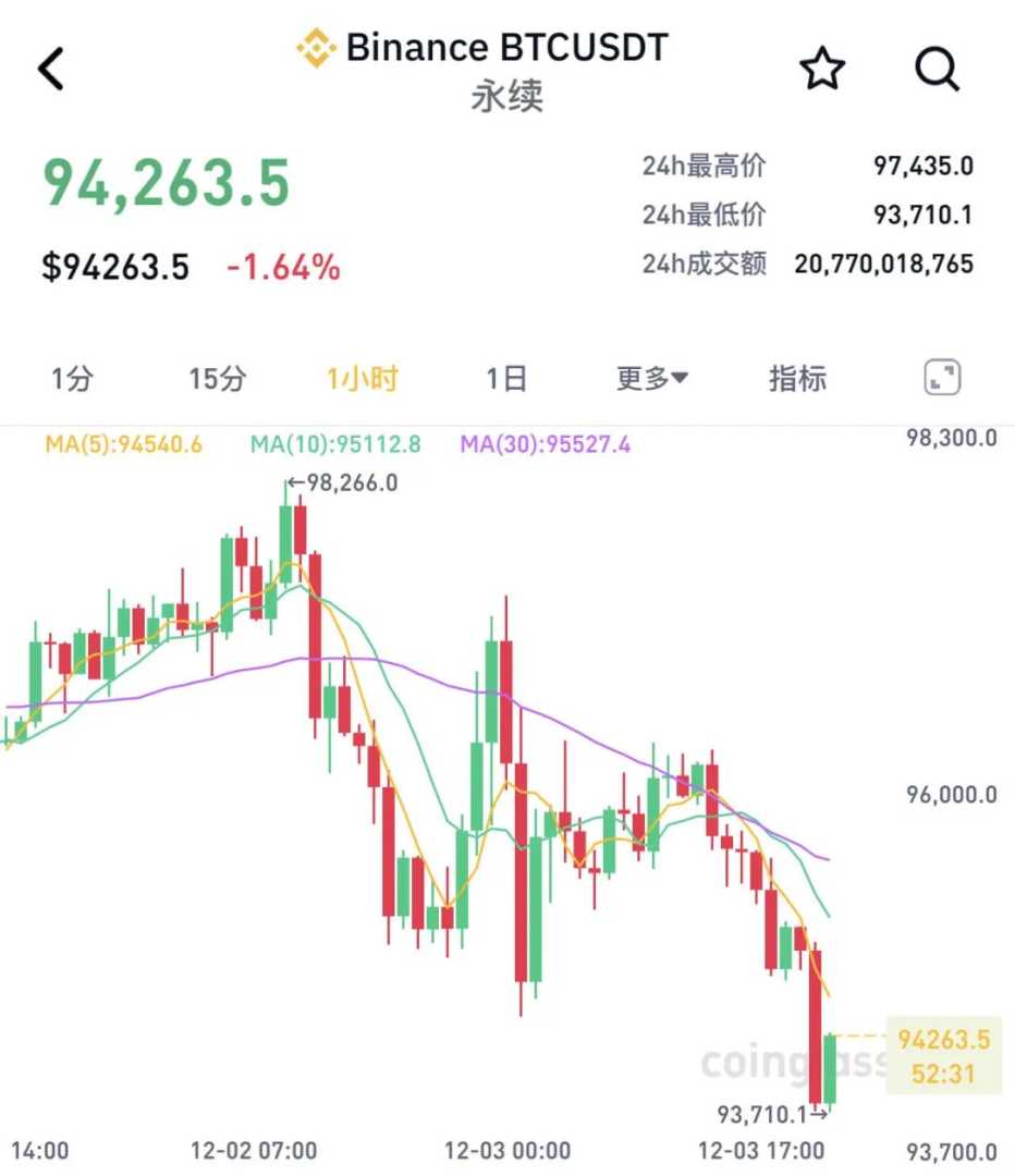 韩国“紧急戒严”引发金融市场动荡,国际油价上涨比特币跌破95000美元