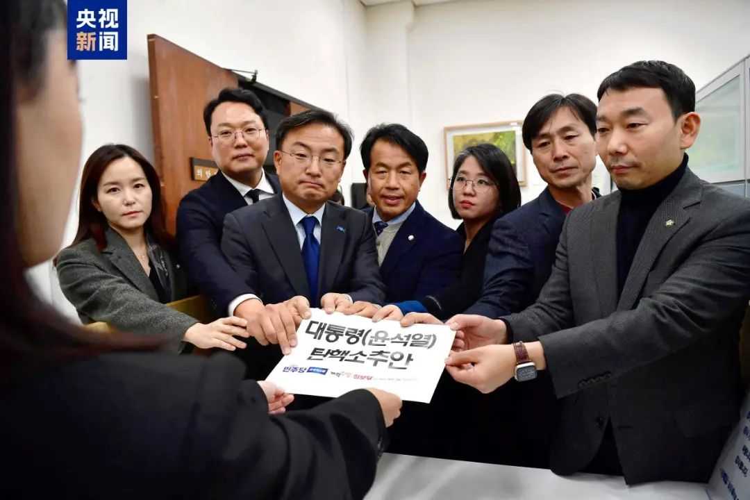 韩国在野党联合提起总统弹劾案 图源:央视新闻