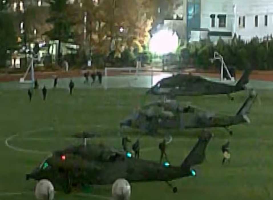 周二午夜被派往国会的军队由280人组成,包括特战司第一空降旅、707特种部队和首都防卫司的第35特种任务大队人员。其中,707部队通过直升飞机空降进入国会。当军队抵达时,已经有大量在野党人士和普通市民抵达国会,阻挡了国会的出入口。